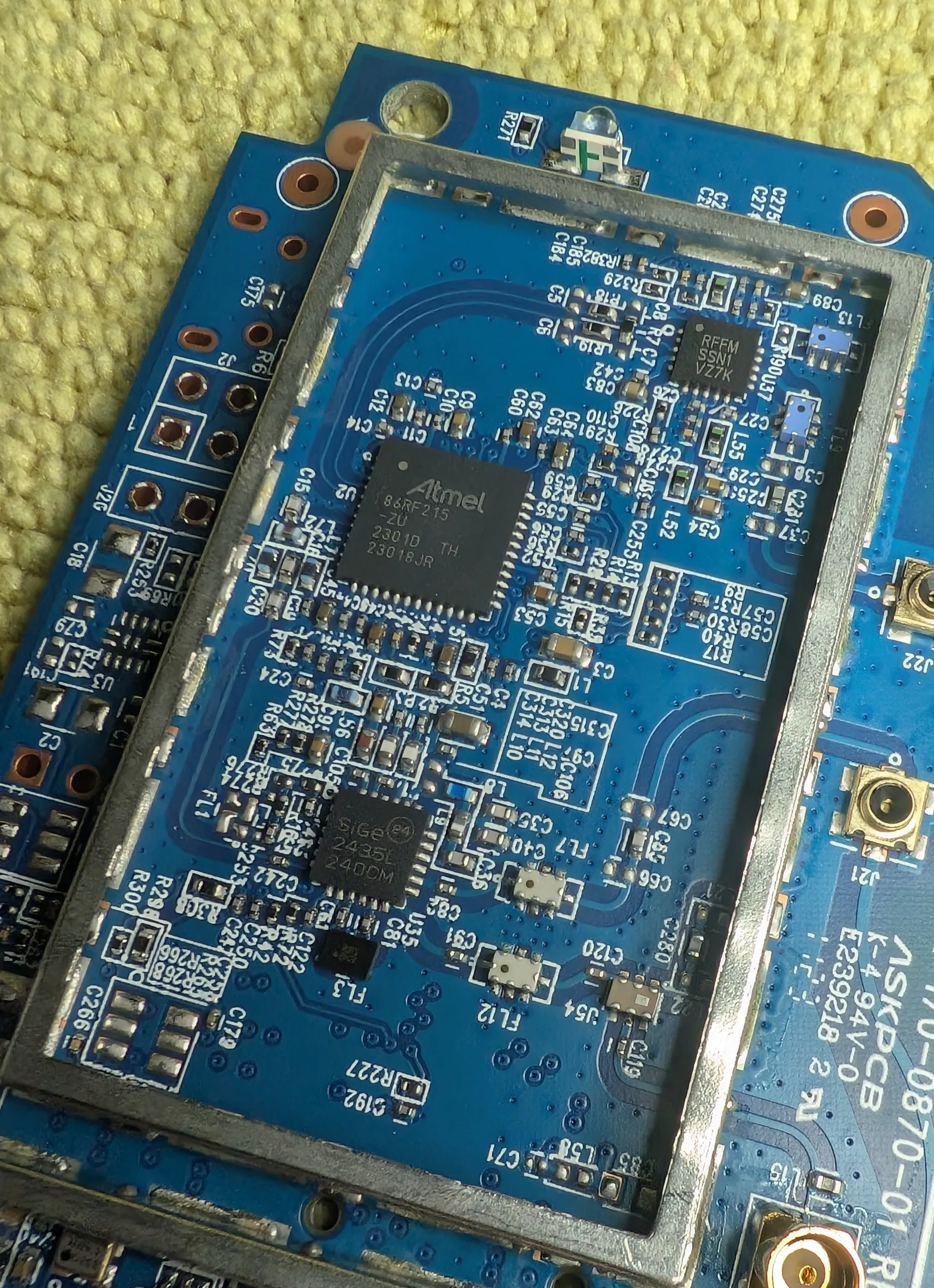 The ARM seems to do house keeping… although it’s probably overkill for what this device needs to do. The ’tall’ pin headers are where the modem module mates.