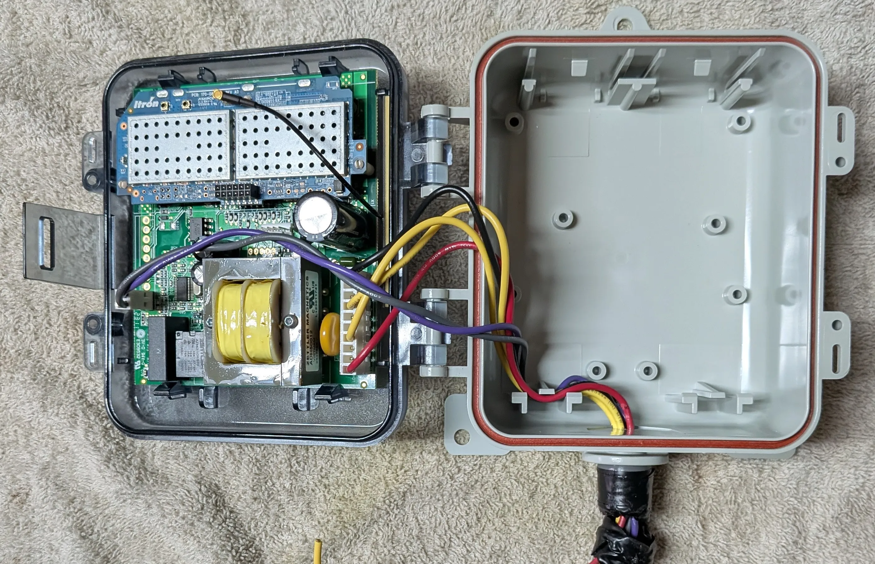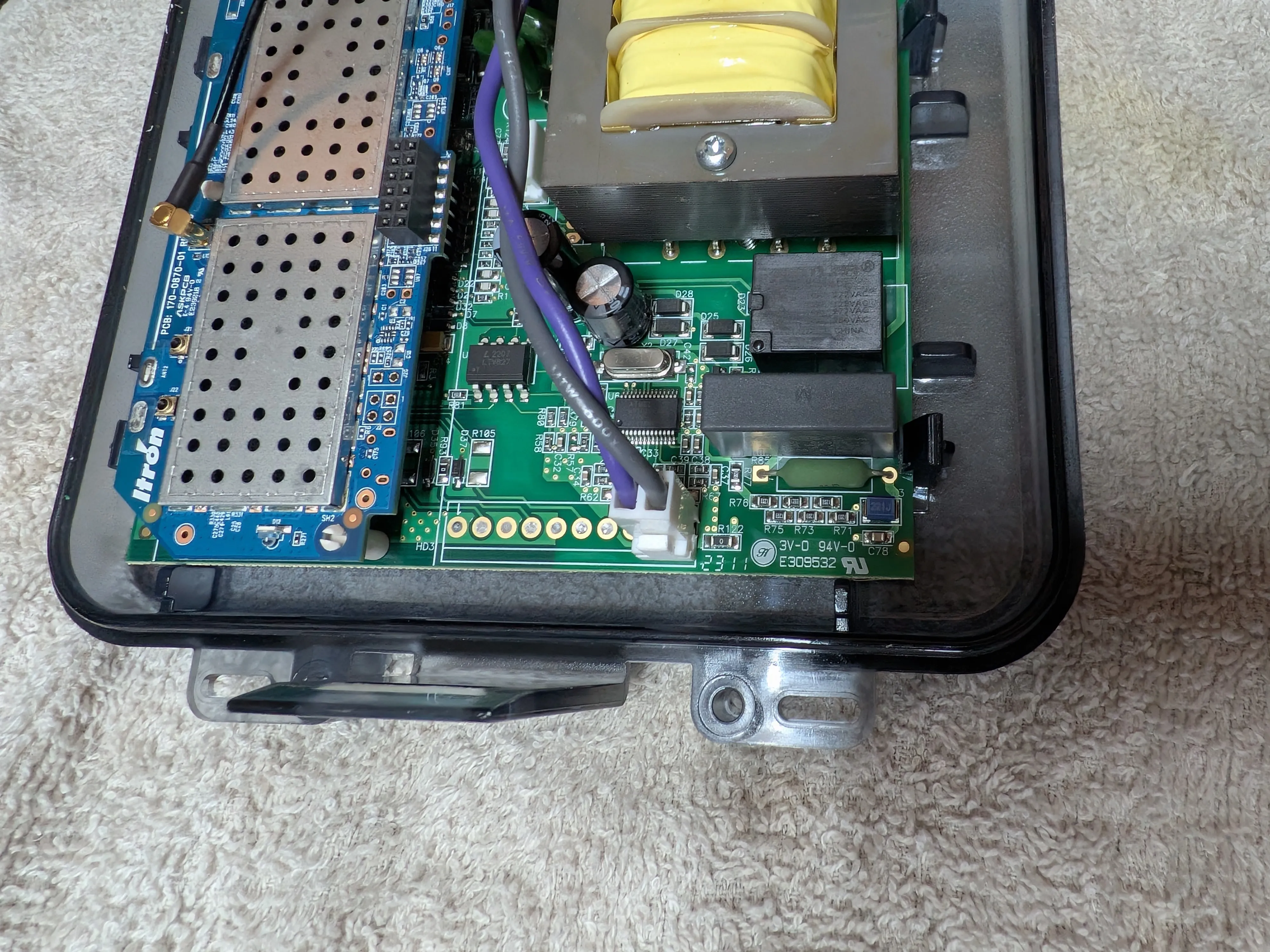 As you might expect from a single purpose device, the internals are pretty straightforward. There is a modem/radio side to communicate with the utility, and a power switching side to understand and control the load.