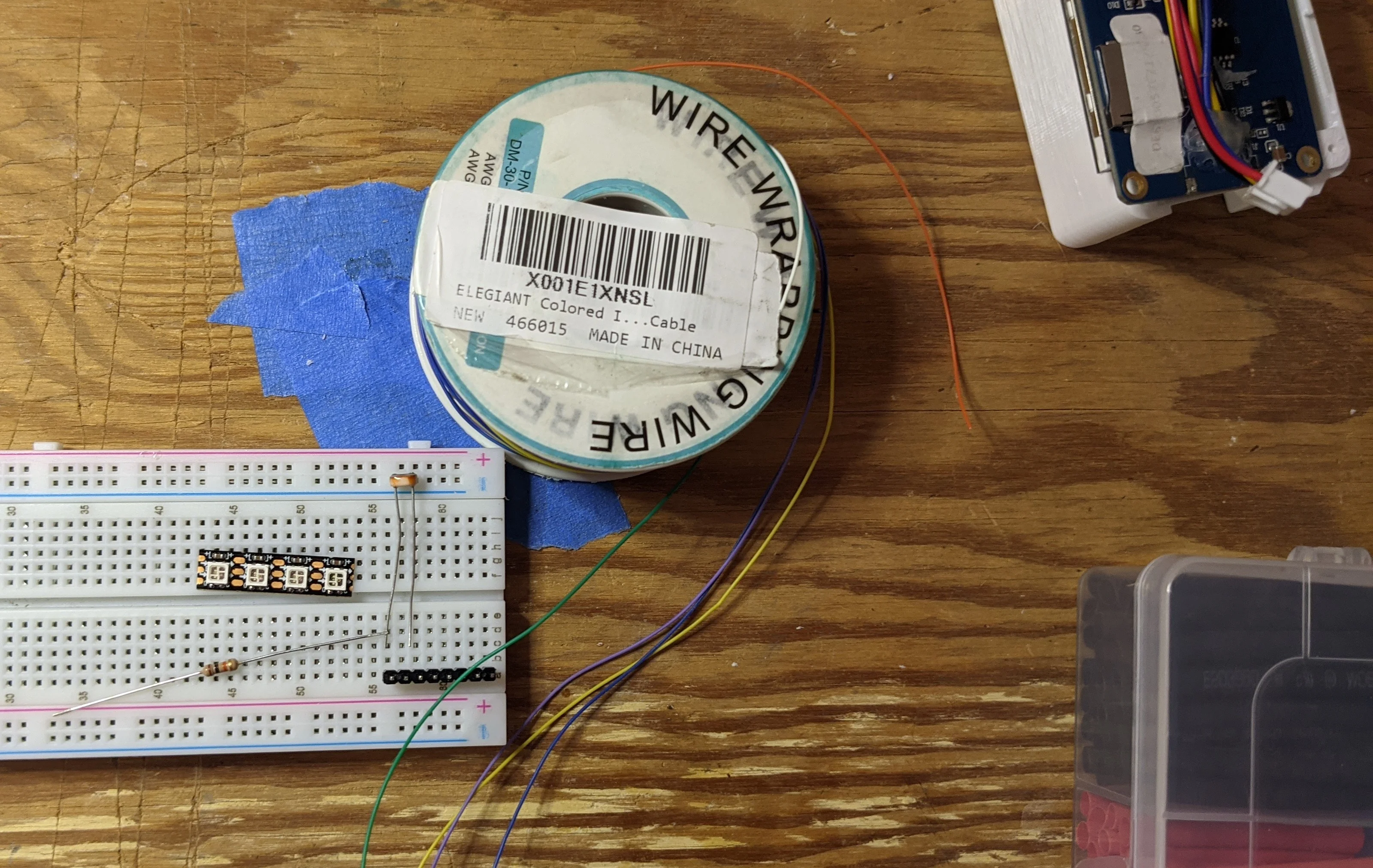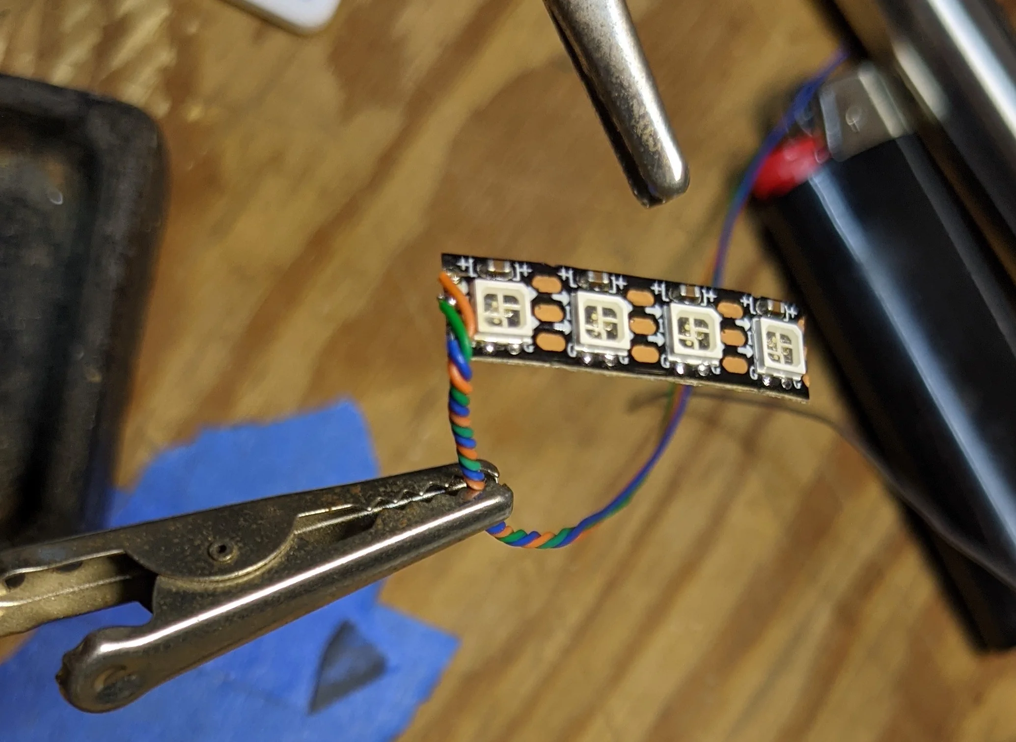 3535SMDpackage! Beyond that, aim for LED tape that is no wider than ~8mm and has highest density possible. After quite some searching, the best that I could find is 8mm wide tape with a density of 144 LEDs per meter. Unfortunately, they don’t sell LEDs 4 at a time, so you can pick up 1 meter of the exact LEDs I used here.Several centimeters of very fine gauge wire. Ideally, multiple colors so you can keep organized but this is not required. Again, space is rather tight, so AWG 28 or 30 is ideal. Much bigger than that and you’ll likely have issues fitting everything together. You can get a 1m length of multiple colors here.