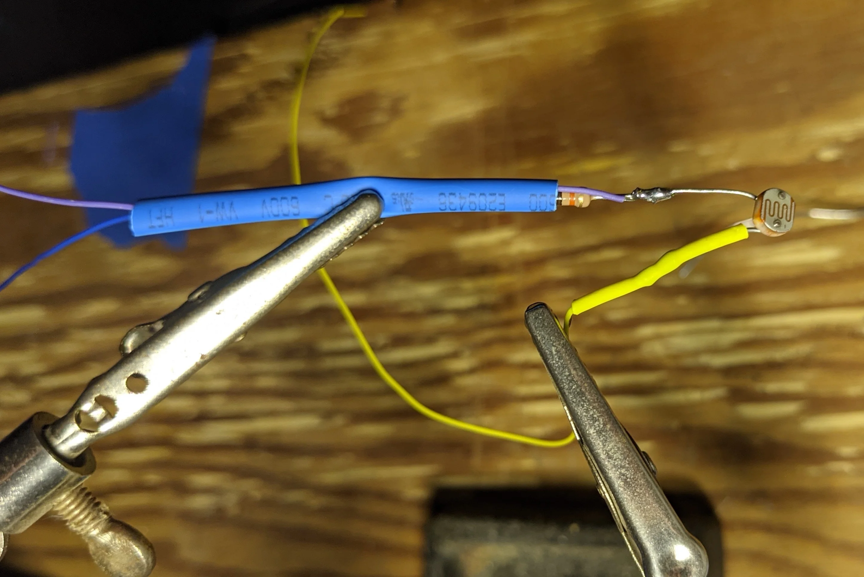 After the solder joint cools, cover the entire LDR/Resistor assembly in HST so there is no exposed wire or component lead.