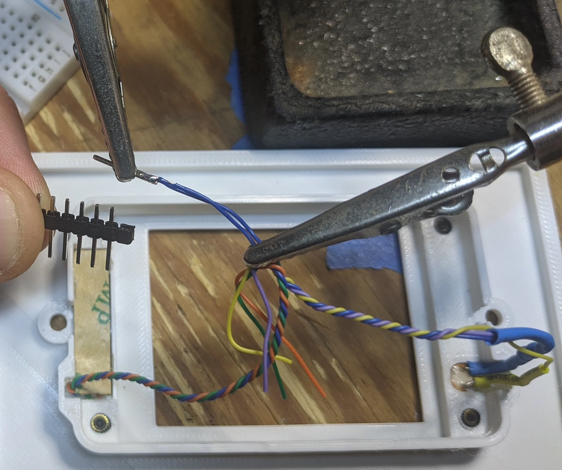 After soldering wires onto the two components, all that’s left is soldering the wires to the correct pins on the pin header.