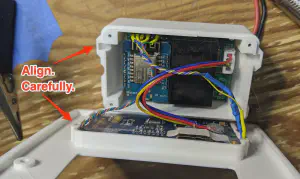 In short, you’ll want to assemble and test the HASP PCB as in the original instructions, but use the steps below as a substitute for the enclosure assembly process.