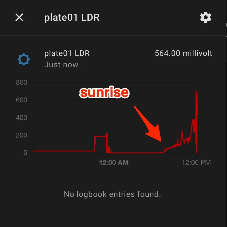 ignore the spikes just before noon, those are due to to testing with a flash light