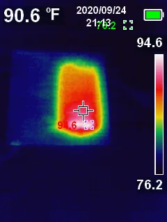 Less heat is radiated through the front of the HASP; the LCD backlight and embedded LEDs are clearly the warmest components