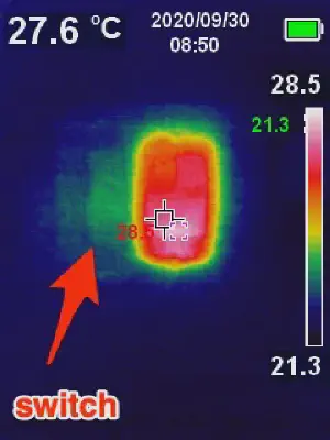 a little bit of ambient heat radiating through the gap between LCD and switch as well as through the switch