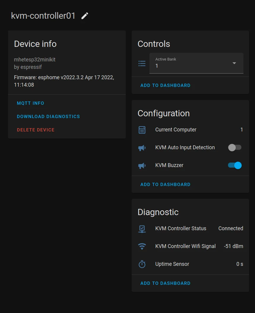 kquinsland/hdmi-kvm-esphome.Yes, I wanted to be able to control this KVM from my Home Assistant install. Some sort of API was a strong desire/requirement for KVM switches for a reason!