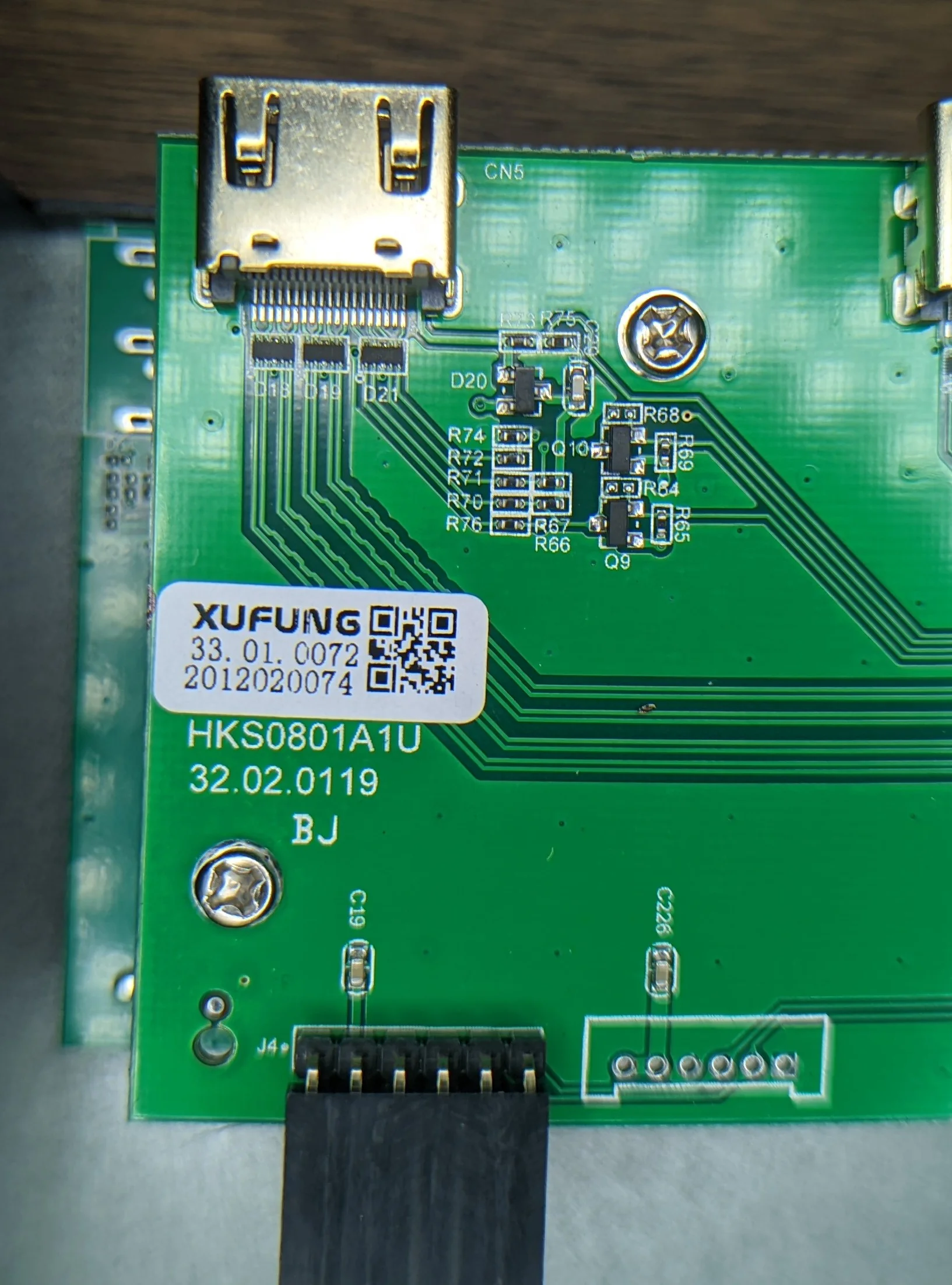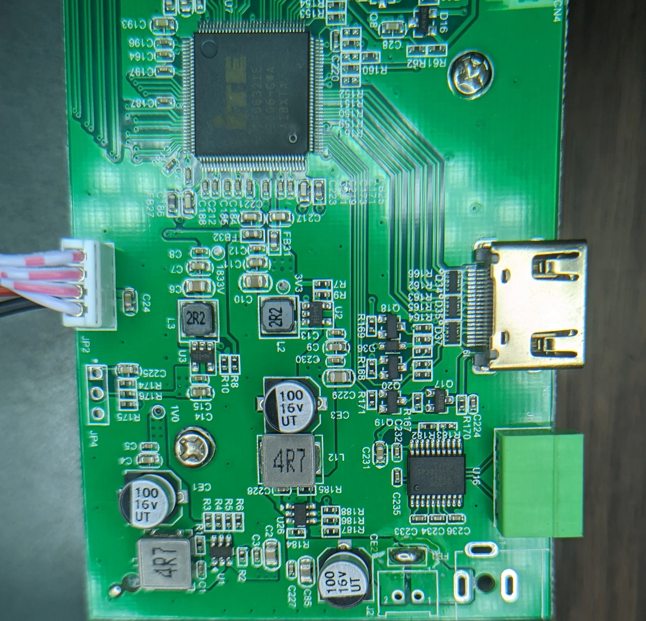 The HDMI PCB is populated with: