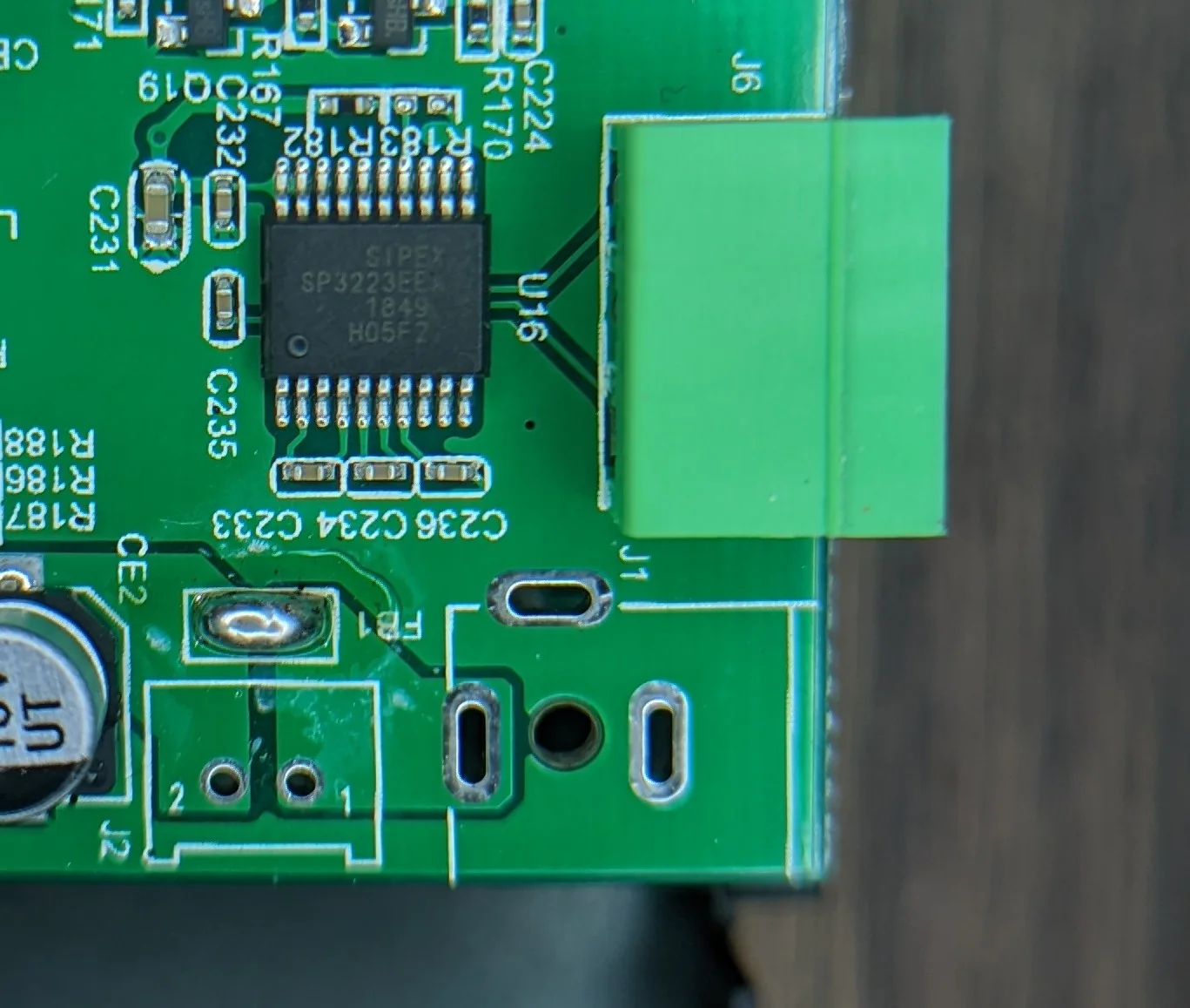 Sorry for the glare. There's a lot of flux residue on this PCB.