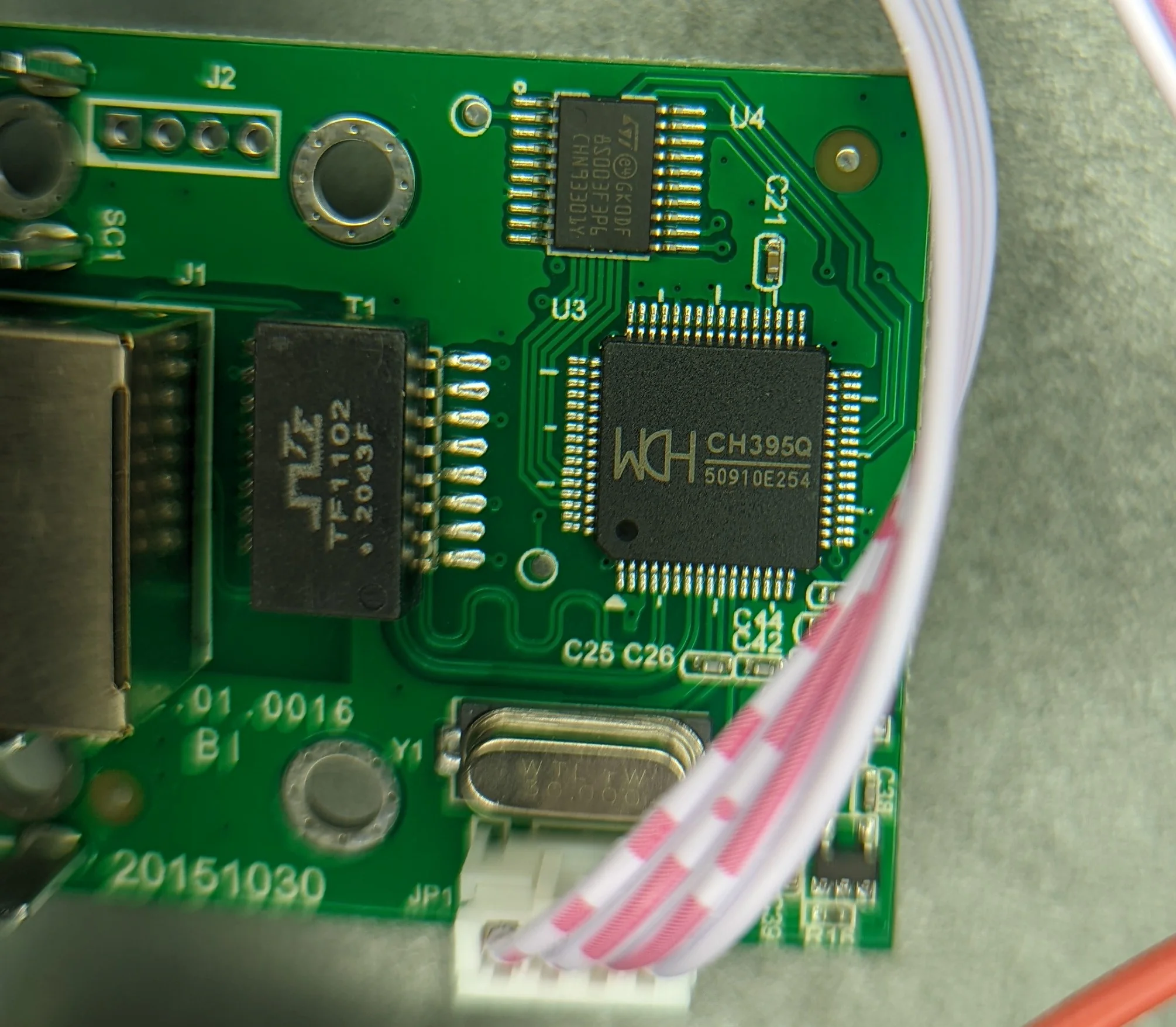 The LAN module PCB is marked with 20151030 and features:\