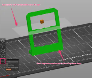 Print Bed arrangement, green is support structures