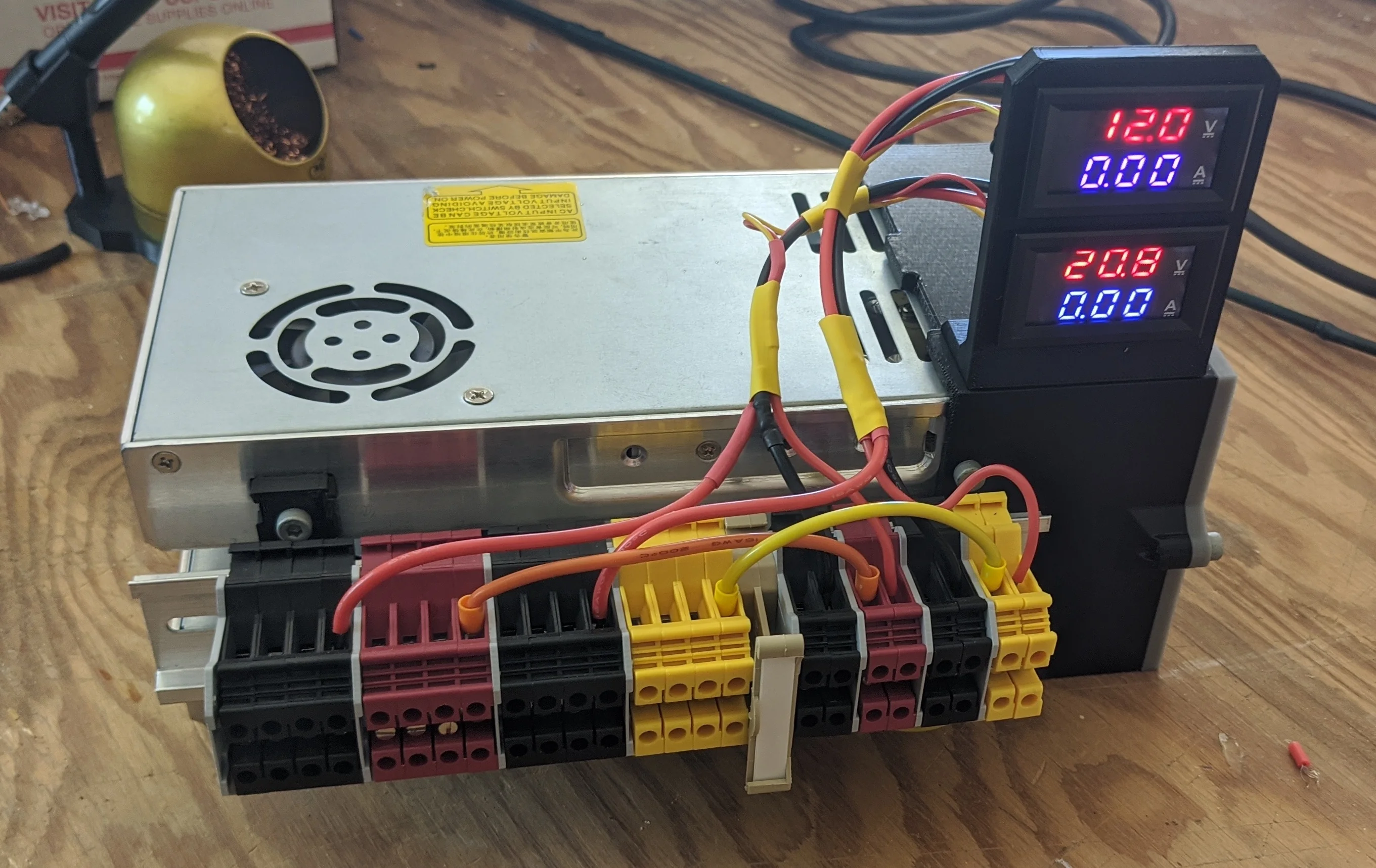 The cluster is a hodgepodge of second hand Intel NUCs and other scavenged compute hardware i’ve collected over the past few years. Some of it runs on 12v, some of it on 19v. For each node, there’s a dedicated switch mode power supply. Each supply takes up an outlet and brings a bit of cable mgmt related clutter. The solution is consolidation.