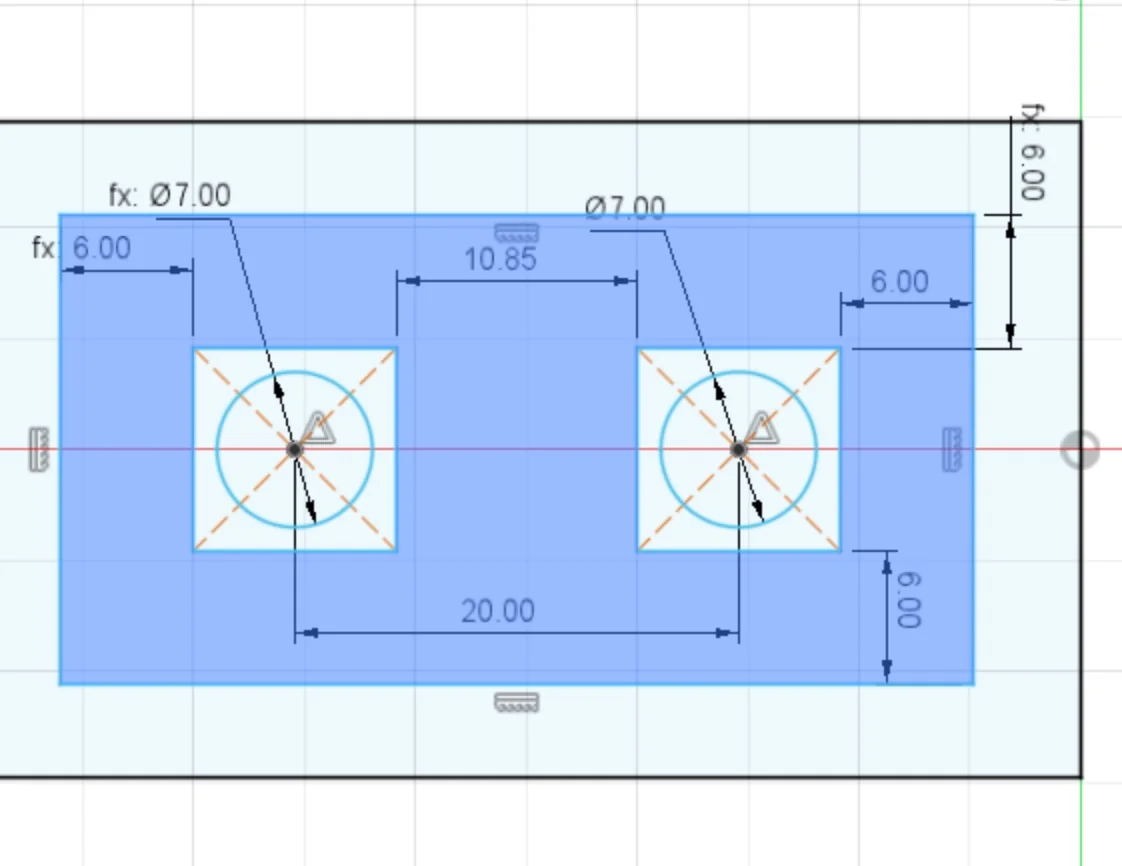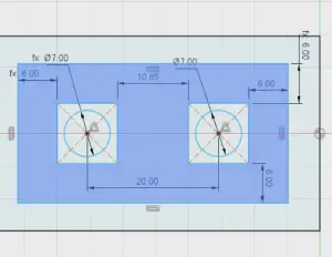 Screenshot from Fusion360 showing dimensions between screw holes