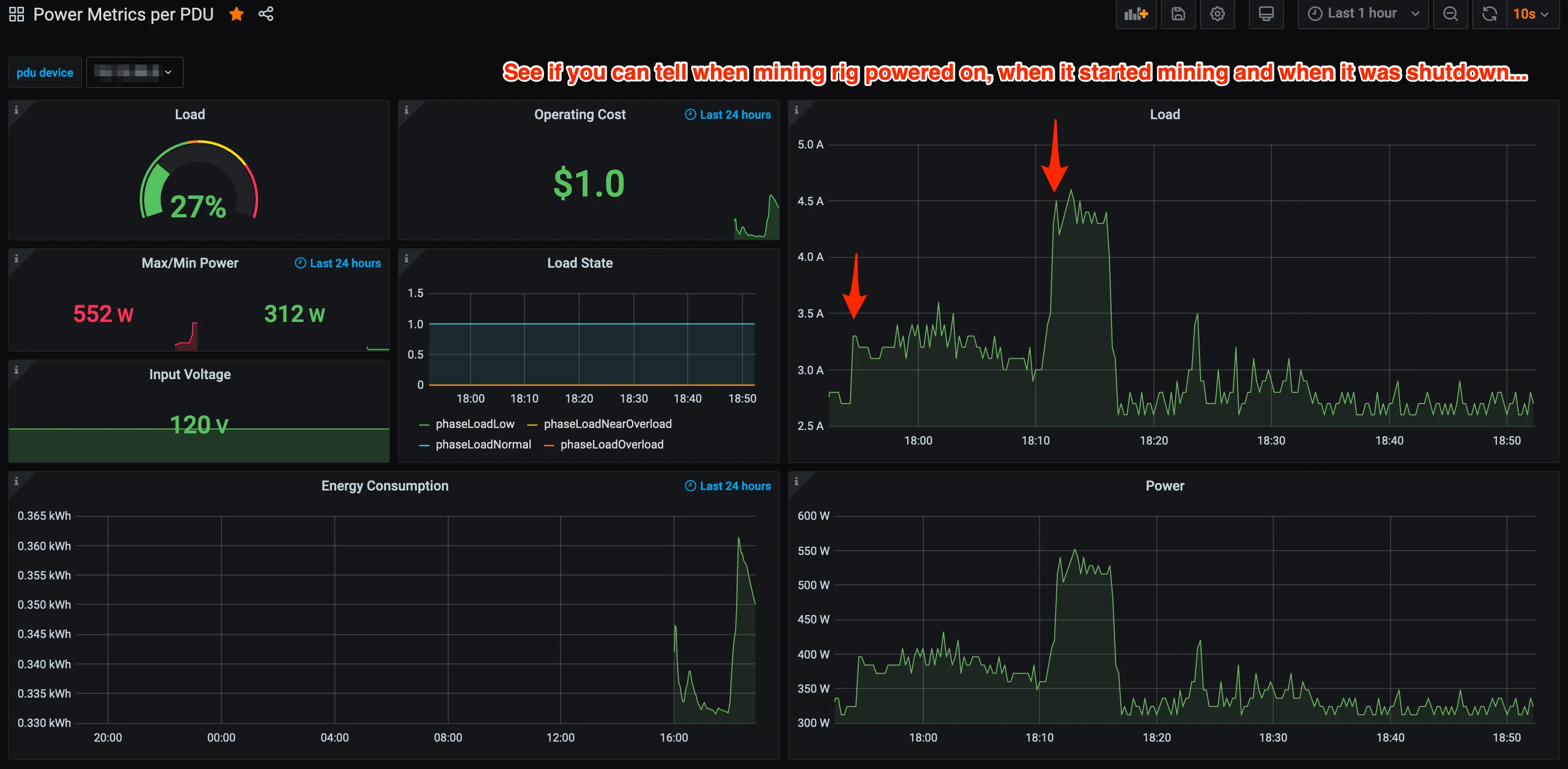 For sanity checking I fired up a load; a crypto-miner. See if you can spot when… :).