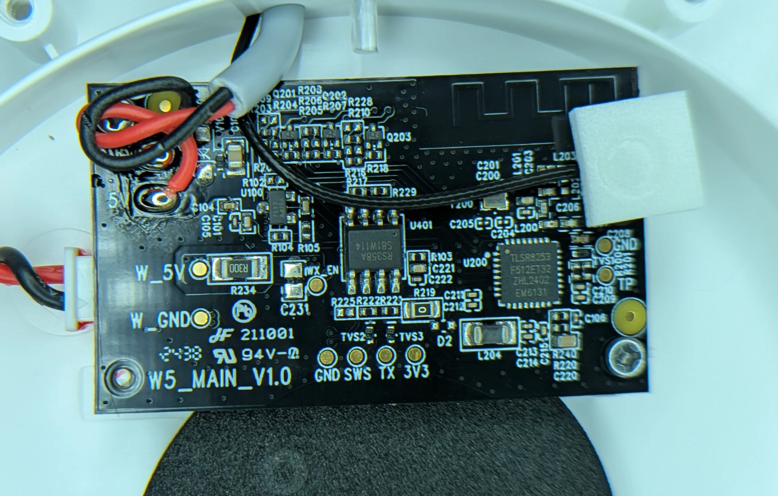 The base isn’t that spectacular; a cheap micro with BTLE controlling power to a basic wireless power transmission module. The wireless power module is covered in conformal coating so the IC number was a pain to read but it is a XKT-511. I can find very little information about this IC. As far as I can tell, it is similar to Qi wireless power but without any signaling or modulation of the carrier signal. Various qi receiver devices will briefly “wake up” when placed on the base but they do not stay powered on or charge. My qi tester does power up and measures about .2W but it can’t recognize the protocol.