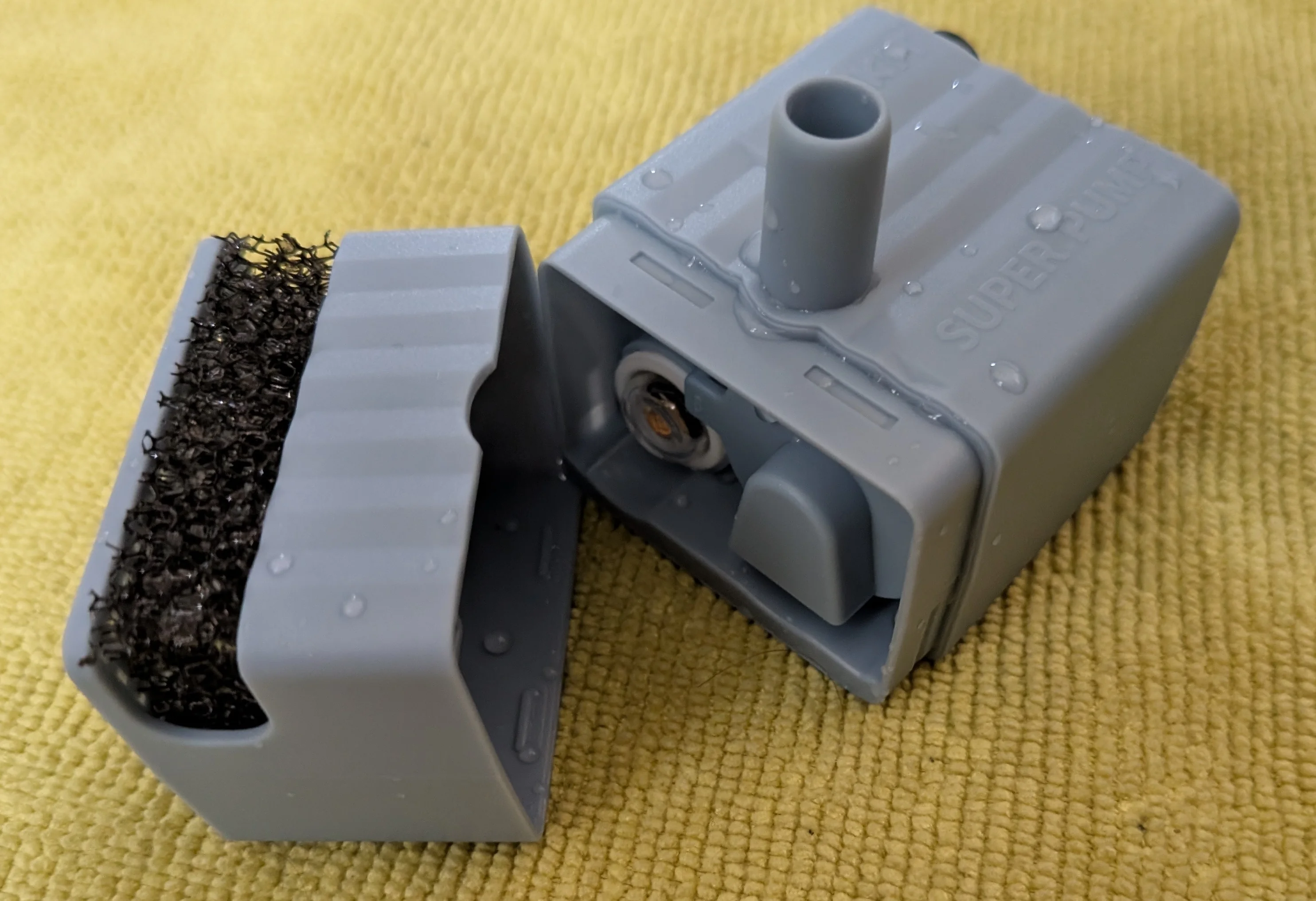 I am primarily interested in the pump; the integrated “low water” sensor and the UV-C sterilization are very nice features that would check off a lot of boxes for me… Unfortunately this pump it lacks both the flow rate and the head that I need for my project.
