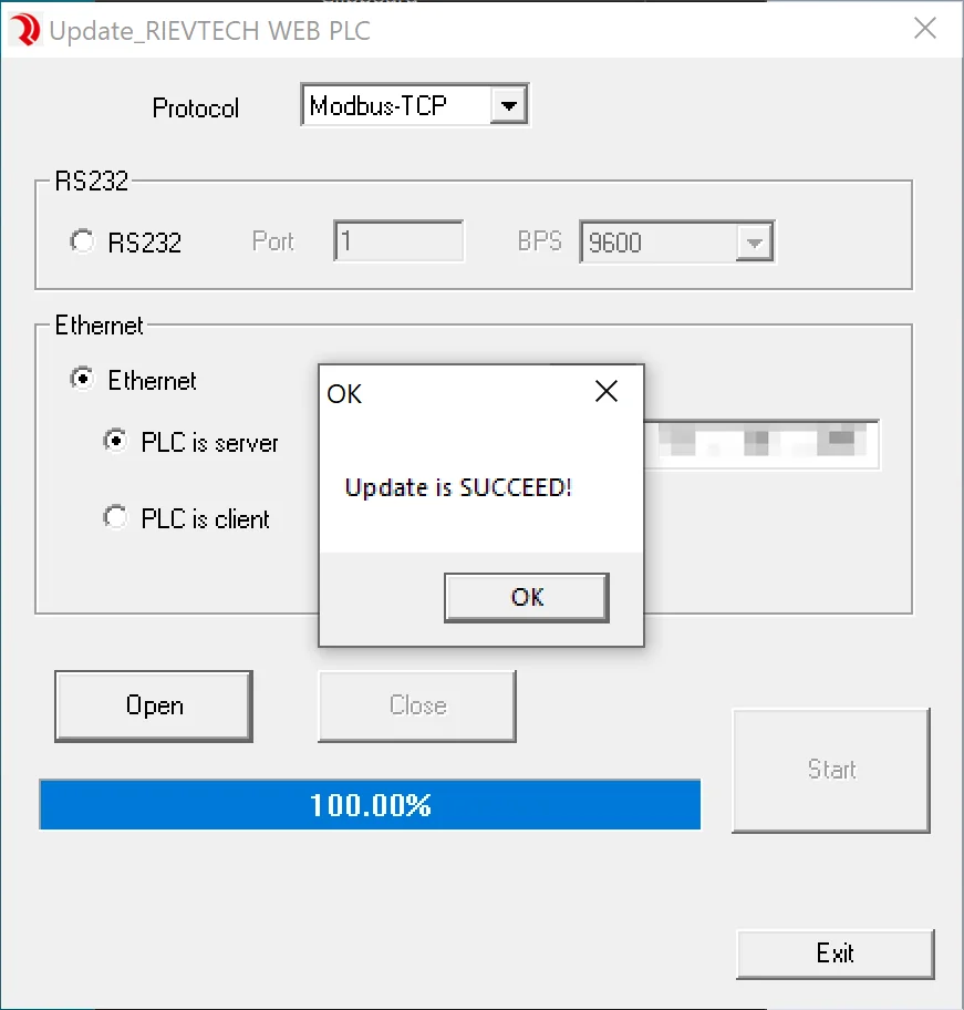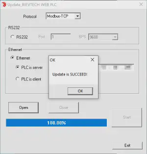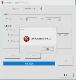 - Click the update button. In my case, I got a failure telling me to `Please power off the PLC first, and then power on again!"