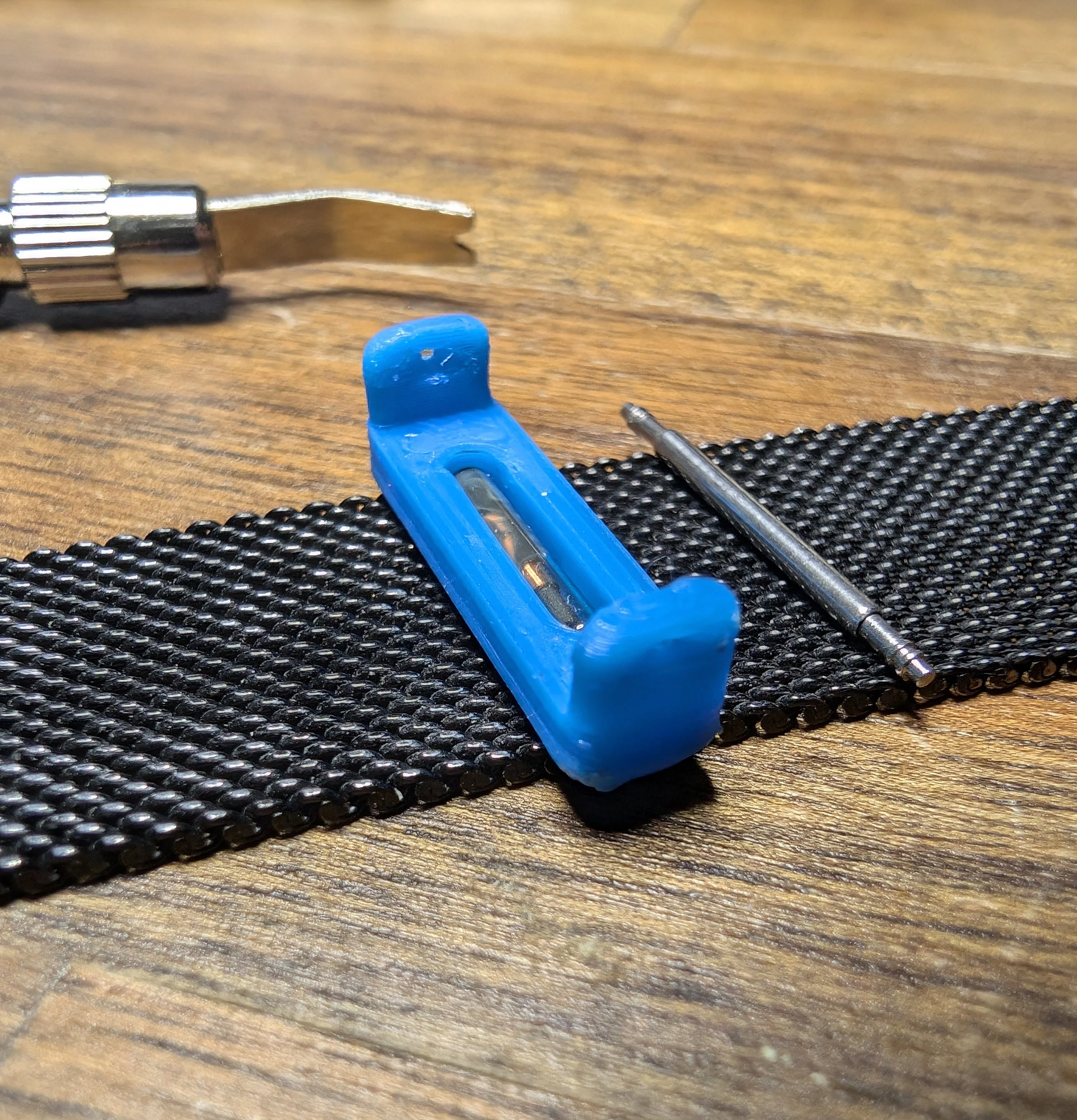 The point is to have a small, unobtrusive design that can be easily attached to a watch band. Because of the wide variety of watch bands available, I have included the raw Fusion360 file for you to modify as needed.