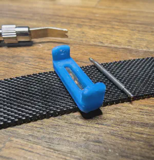 Other than that, you will need to design or print your own enclosure and secure it to the watch band with a standard pin. Sourcing these is quite easy; a local watch shop or jeweler should have them available or you can buy a watch-band kit online. A kit is advisable if you need to prototype multiple designs / play with different pin diameters/lengths.