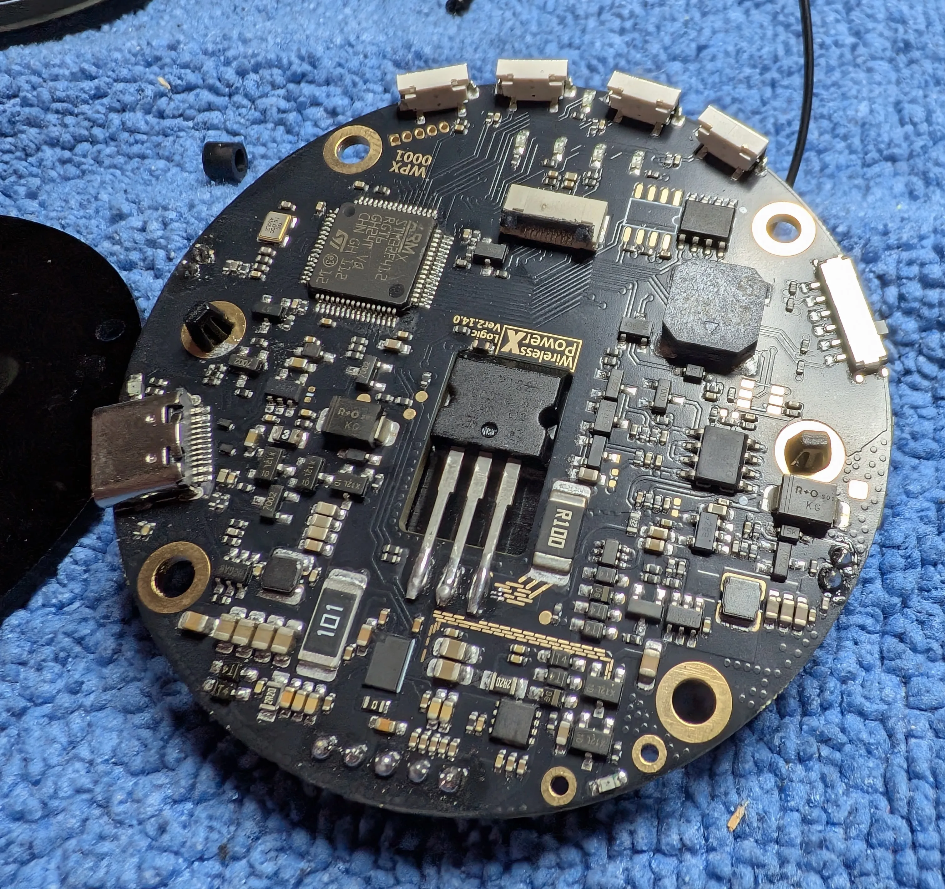 The business-end of the tester is a Qi receiver coil. It’s two coils of magnet wire and some magnets. Nothing special here.
