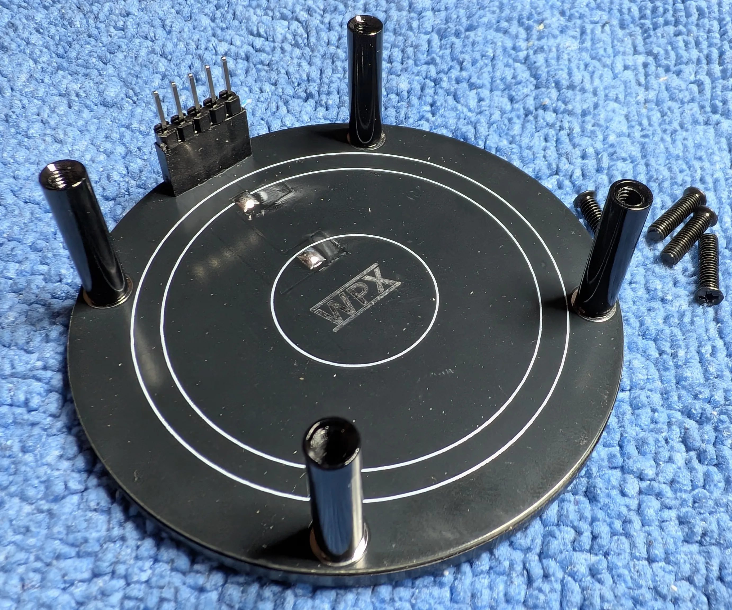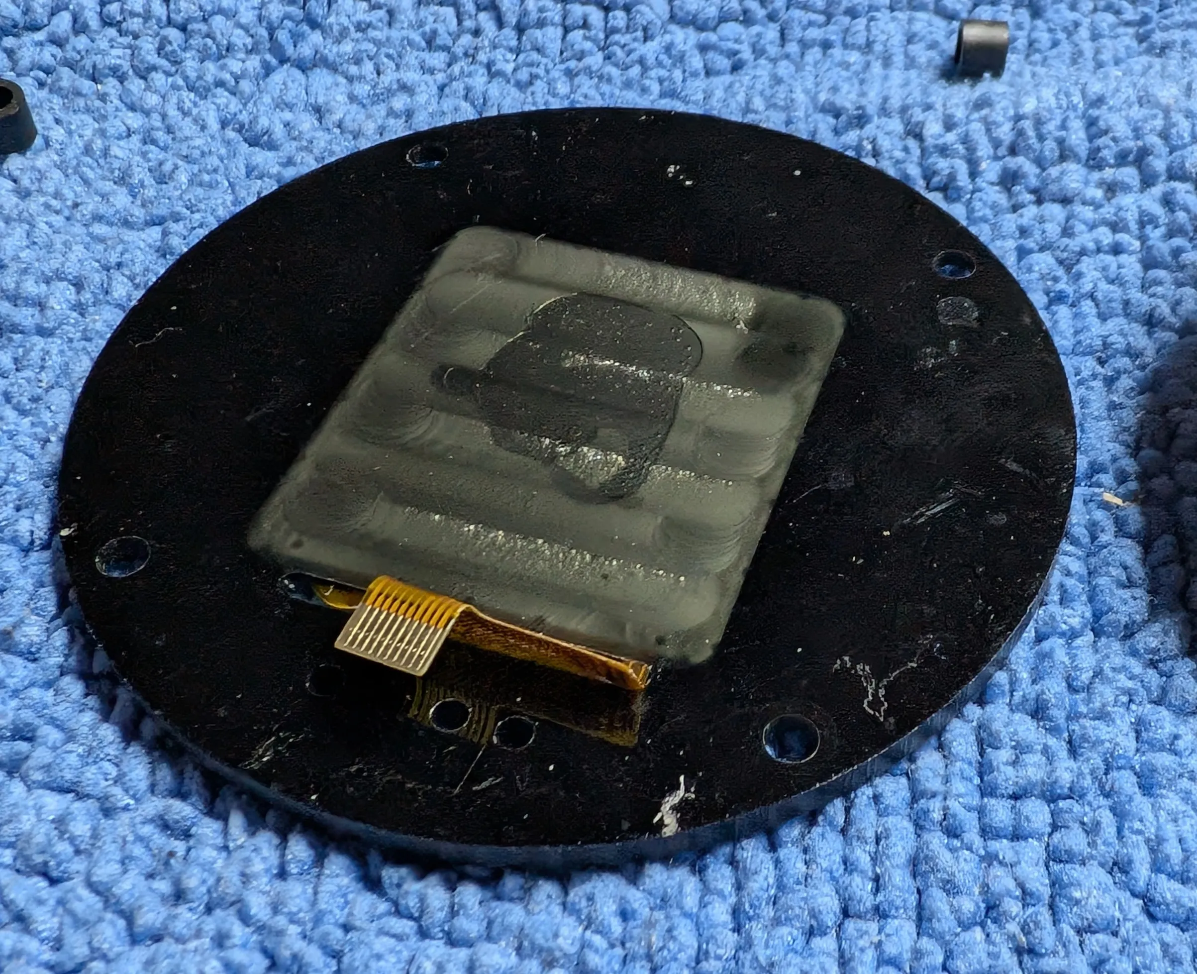 The unit is made up of two circular PCBs screwed together. The screws are hiding behind the decal face plate.
