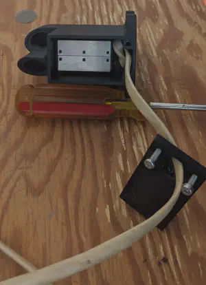 The stepped drill bit in the above picture is not a requirement if you assemble things in the correct oder. The cable egress hole is sized for a ’typical’ 3 pair RJ11 cable plus a tiny bit of wiggle room. I needed a working cable to test the code while the parts were printing so the hole in the printed base needed to be enlarged slightly to fit the head of the cable.