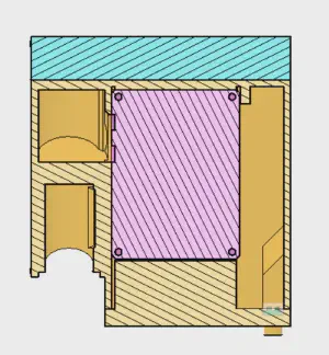 From the side, you can see the two air channels and the few mm of room in the back for wiring. The sensor sits on a ‘pedestal’ to keep it elevated away from any moisture that may collect on the bottom of the enclosure.
